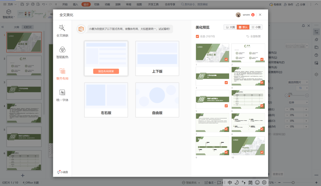 「 给你的PPT进行全文美化 」